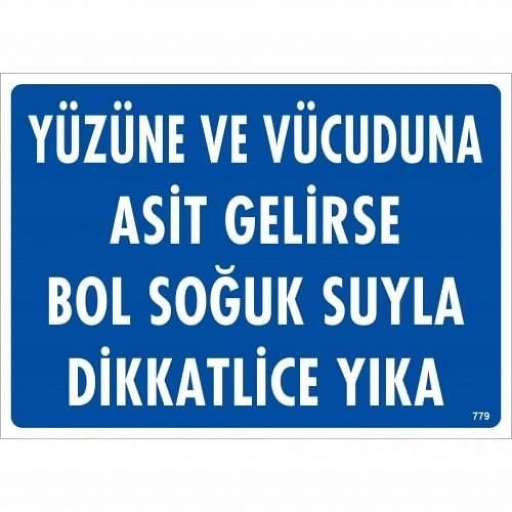 Yüzüne Ve Vücuduna Asit Gelirse Bol Soğuk Suyla Dikkatlice Yıka Uyarı Levhası 25x35 KOD:779